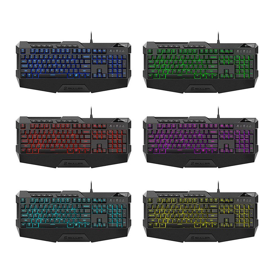 Sharkoon SKILLER SGK4. Tastatur Formfaktor: Volle Größe (100%). Tastatur-Stil: Gerade. Übertragungstechnik: Kabelgebunden, Geräteschnittstelle: USB, Tastatur-Switch: Membran Key Switch, Tastaturaufbau: QWERTZ. Typ der Hintergrundbeleuchtung: RGB-LED, Handgelenkauflage. Kabellänge: 1,8 m. Empfohlene Nutzung: Gaming. Produktfarbe: Schwarz