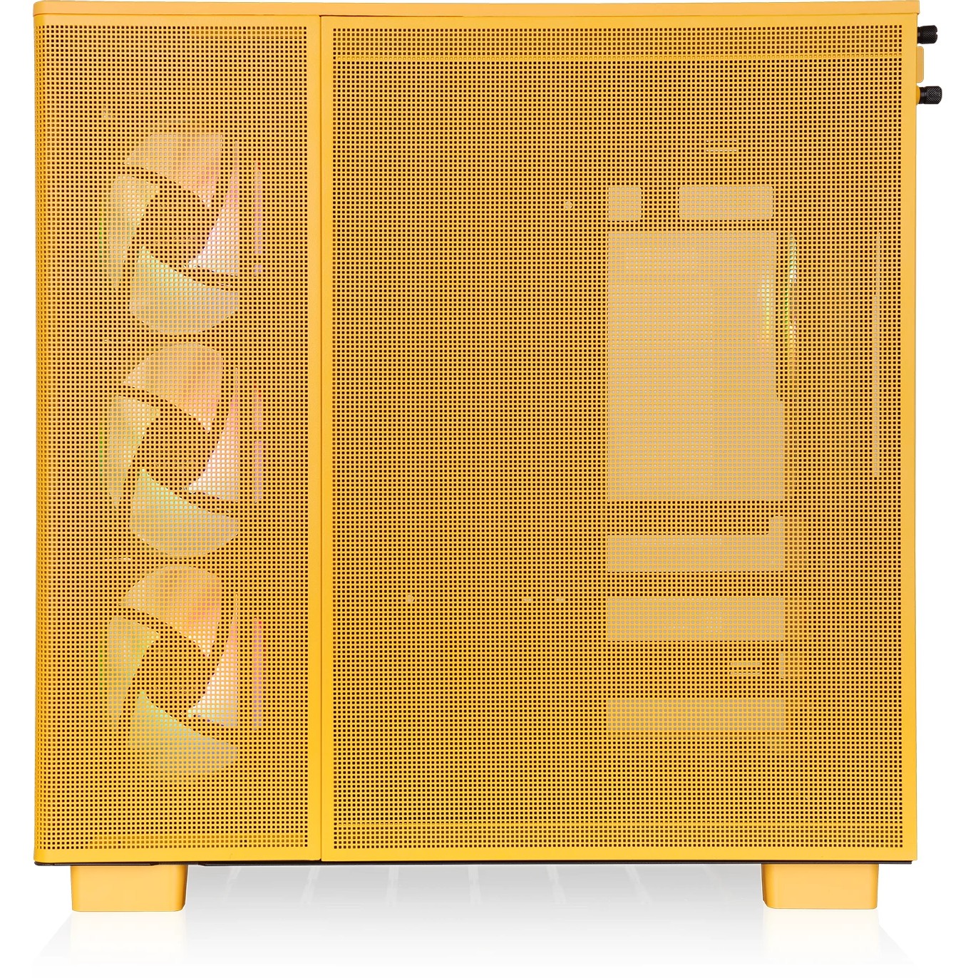 Thermaltake View 380 XL TG ARGB. Formfaktor: Midi Tower, Typ: PC, Produktfarbe: Gelb. Unterstützte Stromversorgungs-Formfaktoren: PS2. Installierte Lüfter seitlich: 3x 120 mm, Durchmesser unterstützte Seitenlüfter: 120 mm, Installierte Lüfter hinten: 1x 120 mm. Unterstützte Hard-Disk Drive Größen: 3.5", SSD-Formfaktor: 2.5". Breite: 288 mm, Tiefe: 469 mm, Höhe: 471 mm