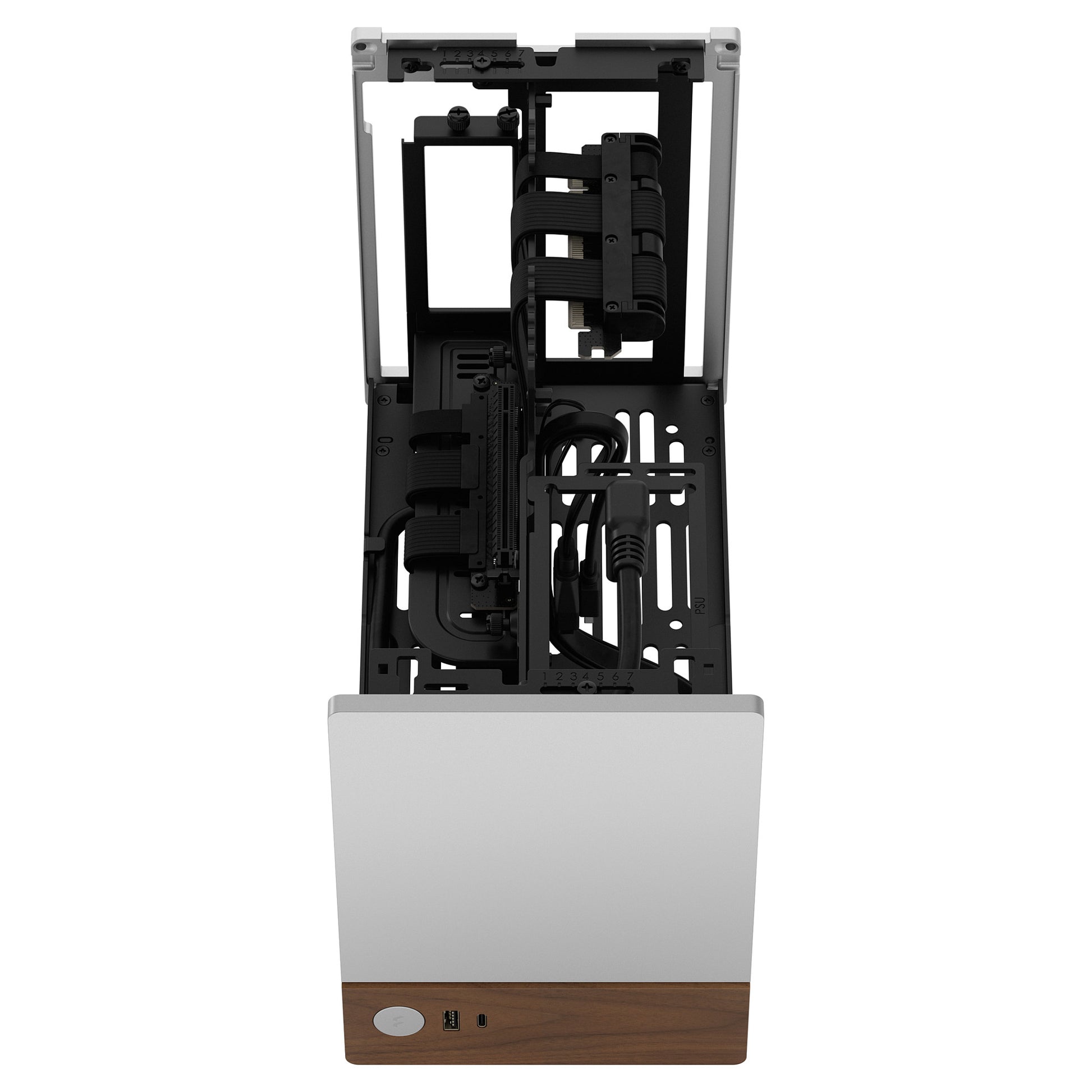 Fractal Design Terra . Formfaktor: Small Form Factor (SFF), Typ: PC, Produktfarbe: Silber. Unterstützte Stromversorgungs-Formfaktoren: SFX, SFX-L. Durchmesser unterstützte Unterlüfter: 120 mm, Unterstützte Größen der seitlichen Radiatoren: 120 mm. Unterstützte Hard-Disk Drive Größen: 2.5", SSD-Formfaktor: 2.5". Breite: 153 mm, Tiefe: 343 mm, Höhe: 218 mm
