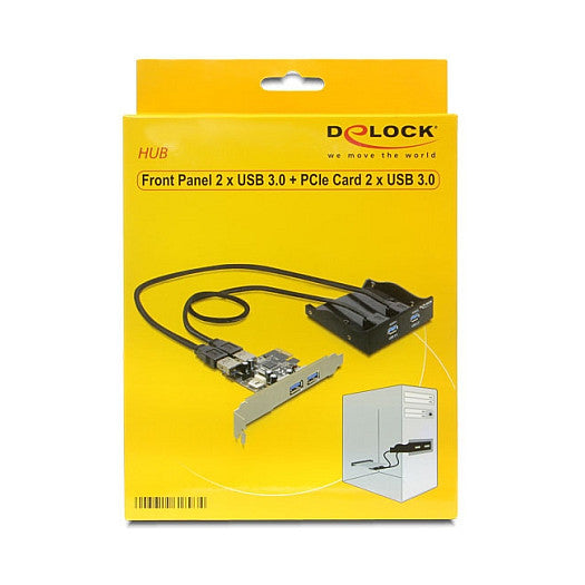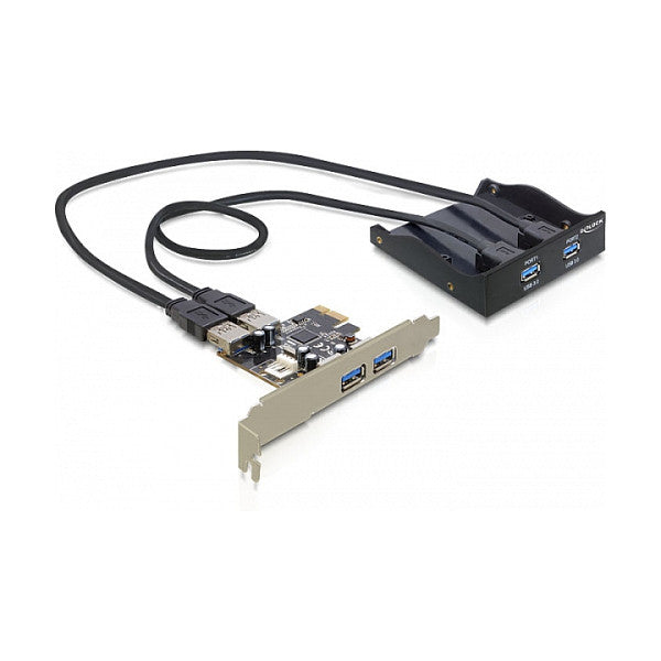 DeLOCK Front Panel + PCI Express Card. Hostschnittstelle: PCIe, Ausgangsschnittstelle: USB 3.2 Gen 1 (3.1 Gen 1). Produktfarbe: Schwarz. Mitgelieferte Kabel: USB. Datenübertragungsrate: 5000 Mbit/s, Kabellänge: 0,6 m, Kompatible Betriebssysteme: Windows XP/XP-64/Vista/Vista-64/7/7-64, Linux ex Kernel 2.6