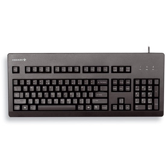 CHERRY G80-3000. Tastatur Formfaktor: Volle Größe (100%). Tastatur-Stil: Gerade. Übertragungstechnik: Kabelgebunden, Geräteschnittstelle: USB, Tastatur - Tastenanzahl: 104. Kabellänge: 1,75 m. Produktfarbe: Schwarz
