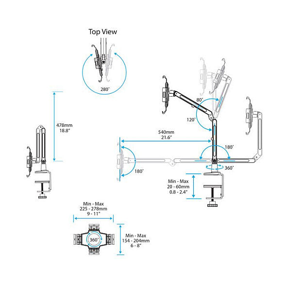StarTech.com Schreibtisch Tablet Halter - Schwenkbarer Arm - Für iPad und Android. Handy-Gerätetyp: Tablet/UMPC, Vorgesehene Verwendung: Drinnen, Produktfarbe: Weiß