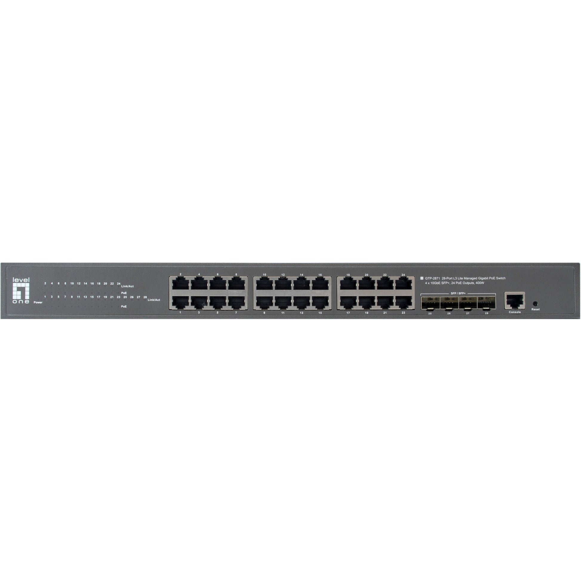 Switch 24x GE GTP-2871 4x10GSFP+19" 400W 24xPoE+